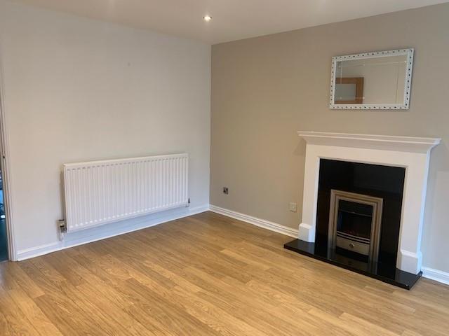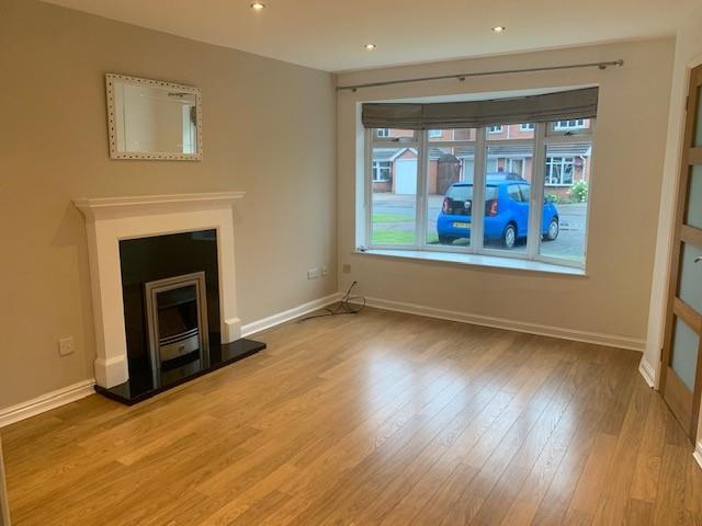 Spacious lounge with electric fireplace and bow window to fore. Door to kitchen to rear.