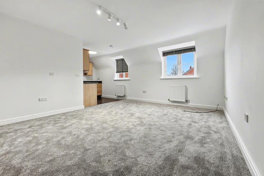 Spacious living area being open plan to Kitchen and with windows to fore.