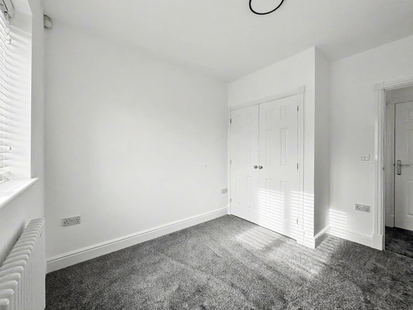 Double bedroom with built in wardrobes and window to rear.