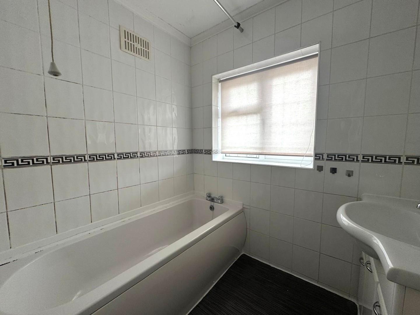 With suite comprising of bath with shower above, wash hand basin and wc.