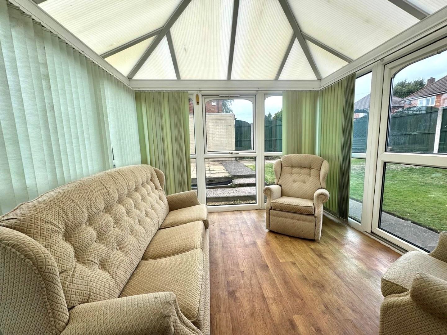 With a range of storage cupboards, sink and drainer, cooker and hob and space for dining table. Door leads to Utility to side.