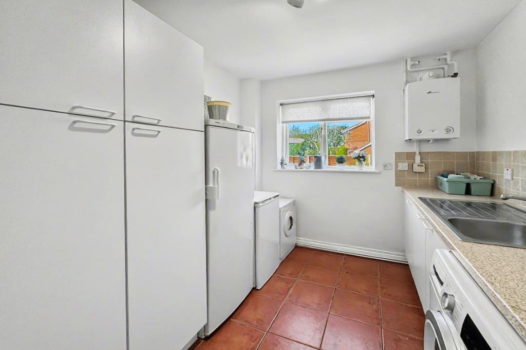 With a range of storage cupboards, space and plumbing for appliances, housing boiler.