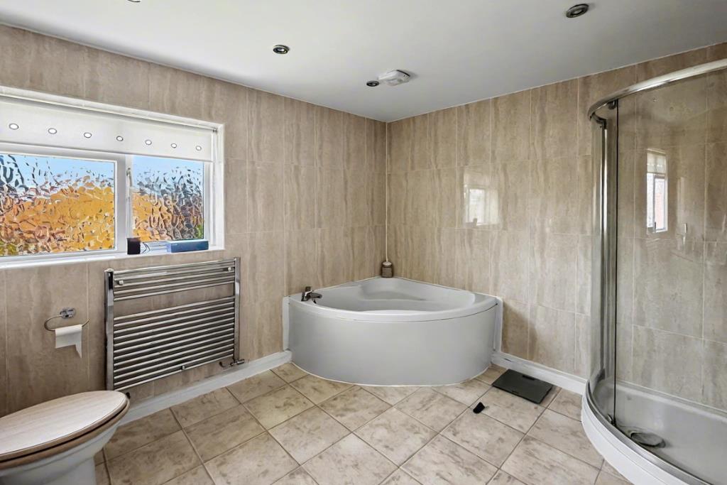 Potential (subject to planning) to knock through into the adjoining sauna room to convert to ensuite shower room.