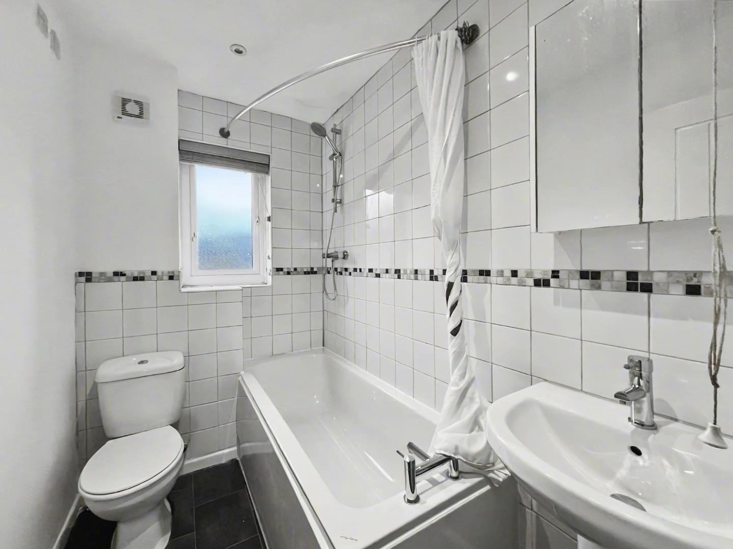 With wc, hand basin and shower over bath