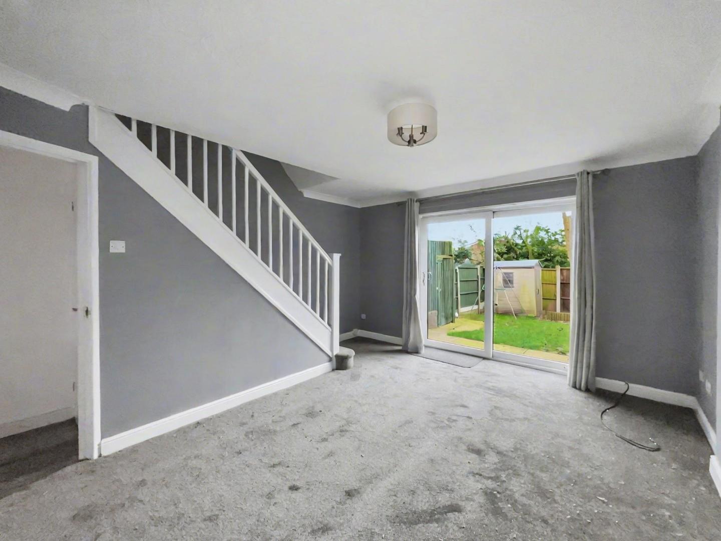 Good sized living room with patio doors leading to the rear garden and stairs leading to;-