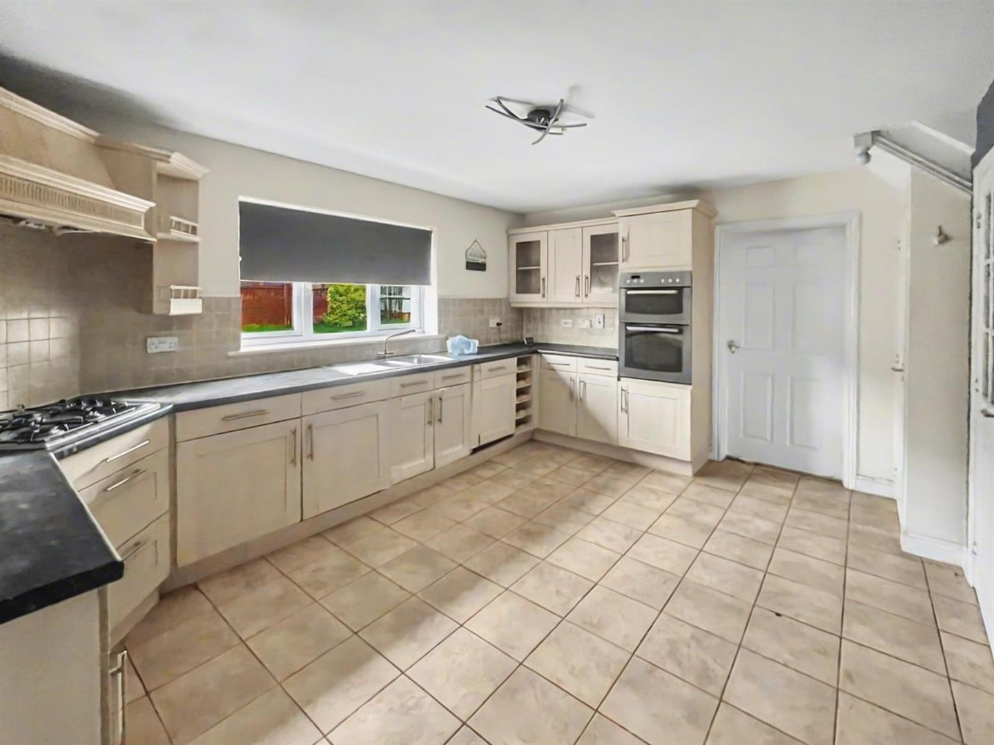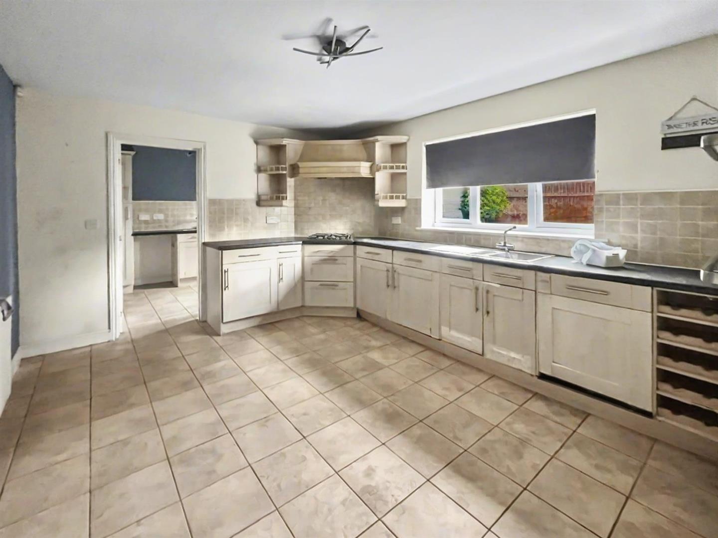 With adjoining Utility Room and with a range of storage cupboards, sink and drainer and space for appliances.