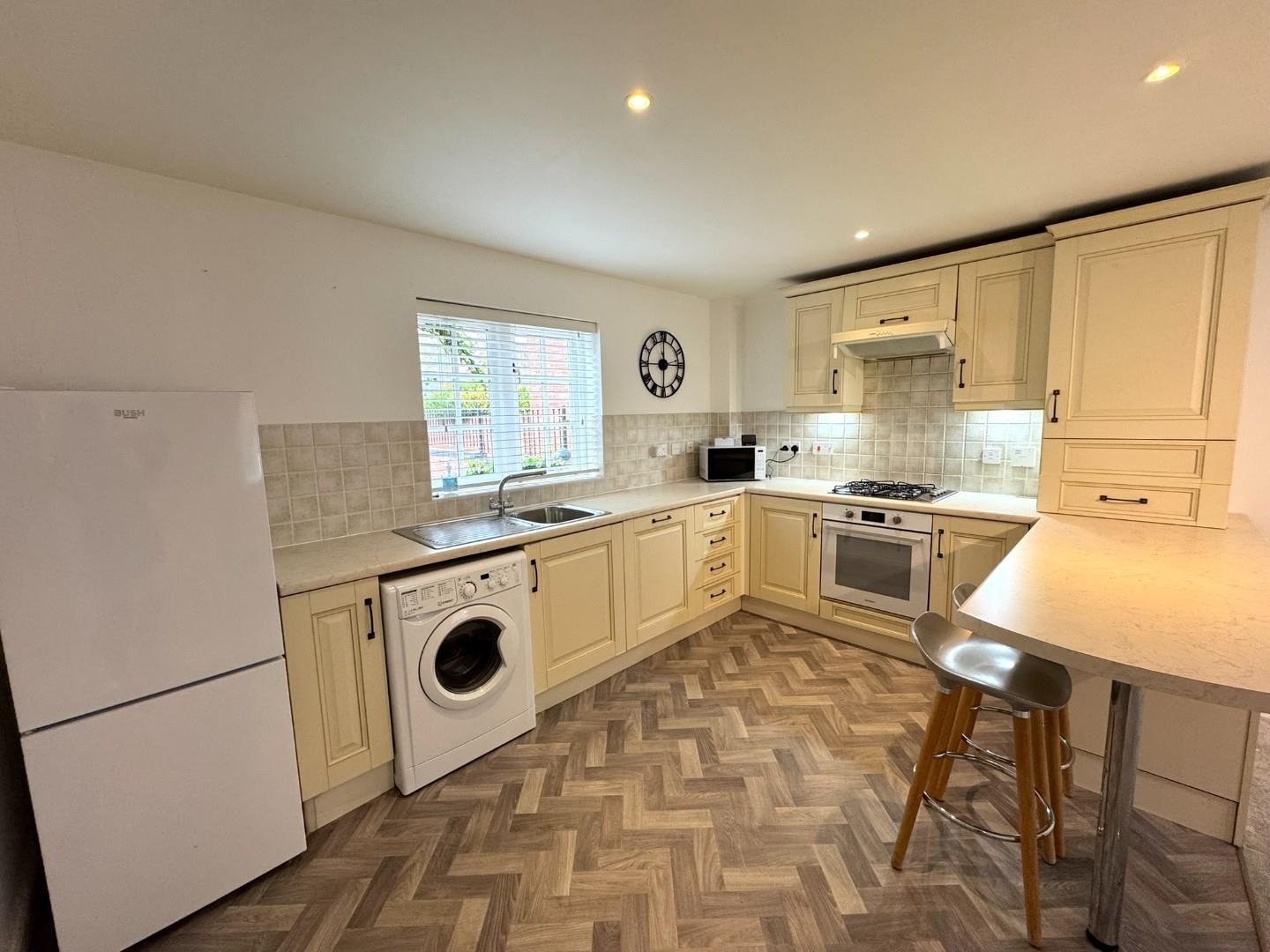 Spacious kitchen with breakfast bar that separates the kitchen from the living room. The property comes with a fridge/freezer, washer/dryer and a dishwasher. New boiler in 2024.