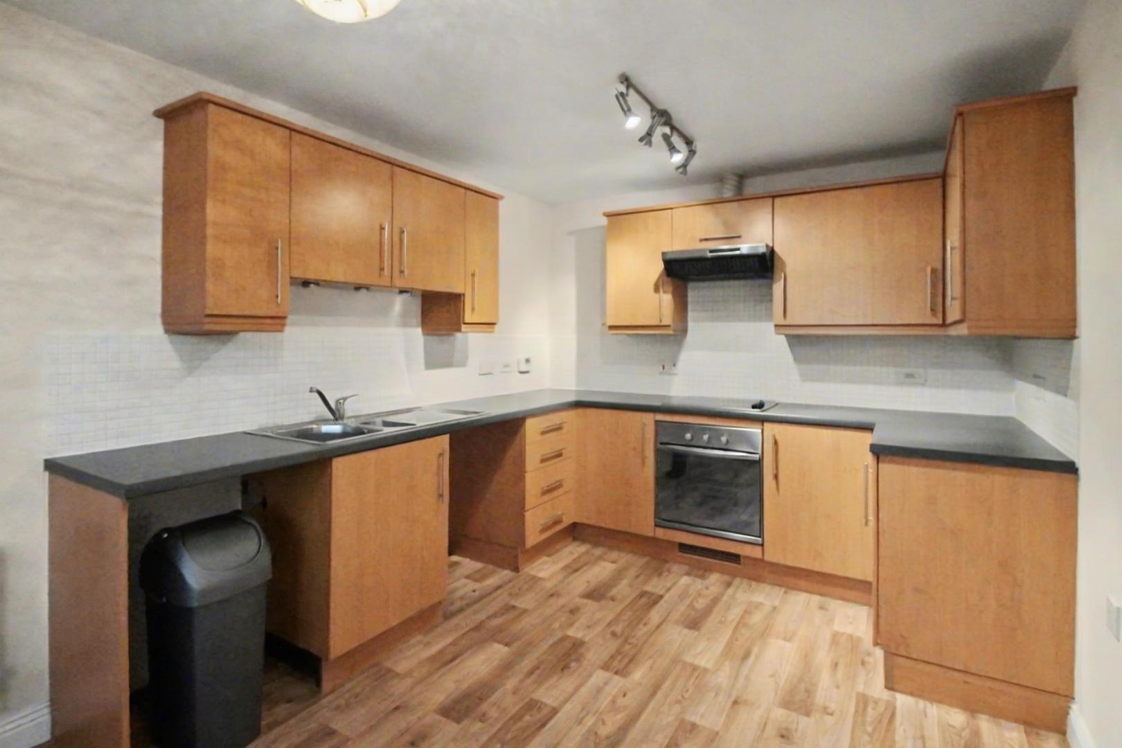 With a modern range of storage cupboards, tiled splash backs, double glazed window to fore, space for appliances, gas hob and cooker and housing central heating boiler.